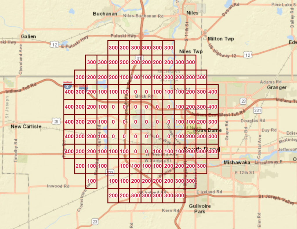 For example, South Bend Indiana’s UASFM shows where different altitudes sUAS might fly with FAA Headquarters approval. In this example, South Bend’s map assigns each segment value of 0-400 and are in 50-foot increments.